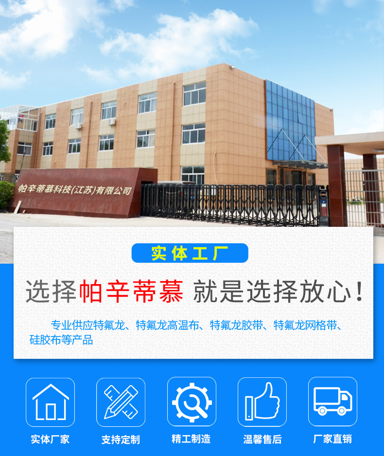 Copyright @ 2011-2018 帕辛蒂慕科技(江蘇)有限公司 All Rights Reserved. 版權所有 本站關鍵詞:特氟龍膠帶、特氟龍高溫布、鐵氟龍膜、特氟龍輸送帶、鐵氟龍膠帶 技術支持:泰州譽唯網絡